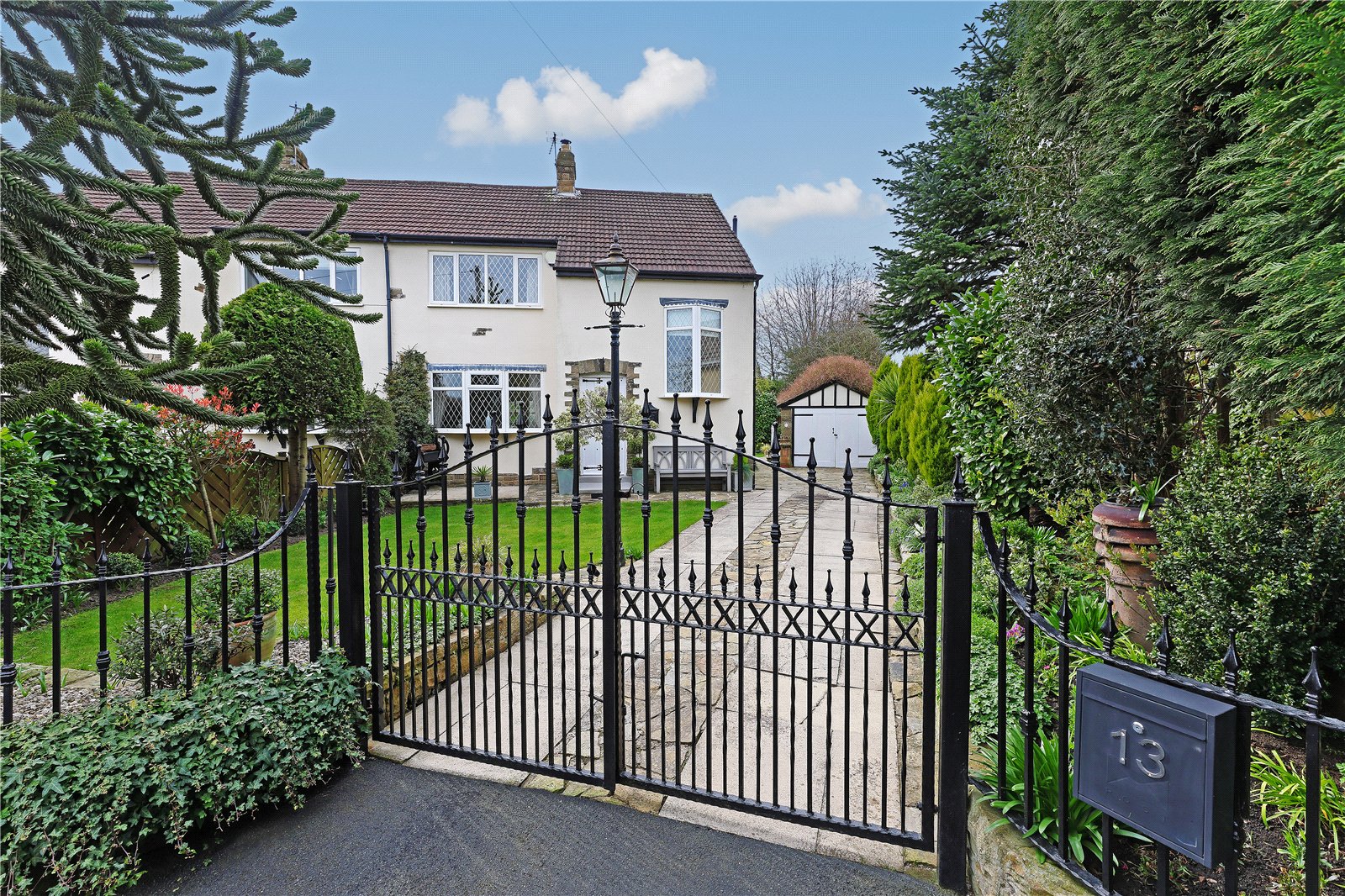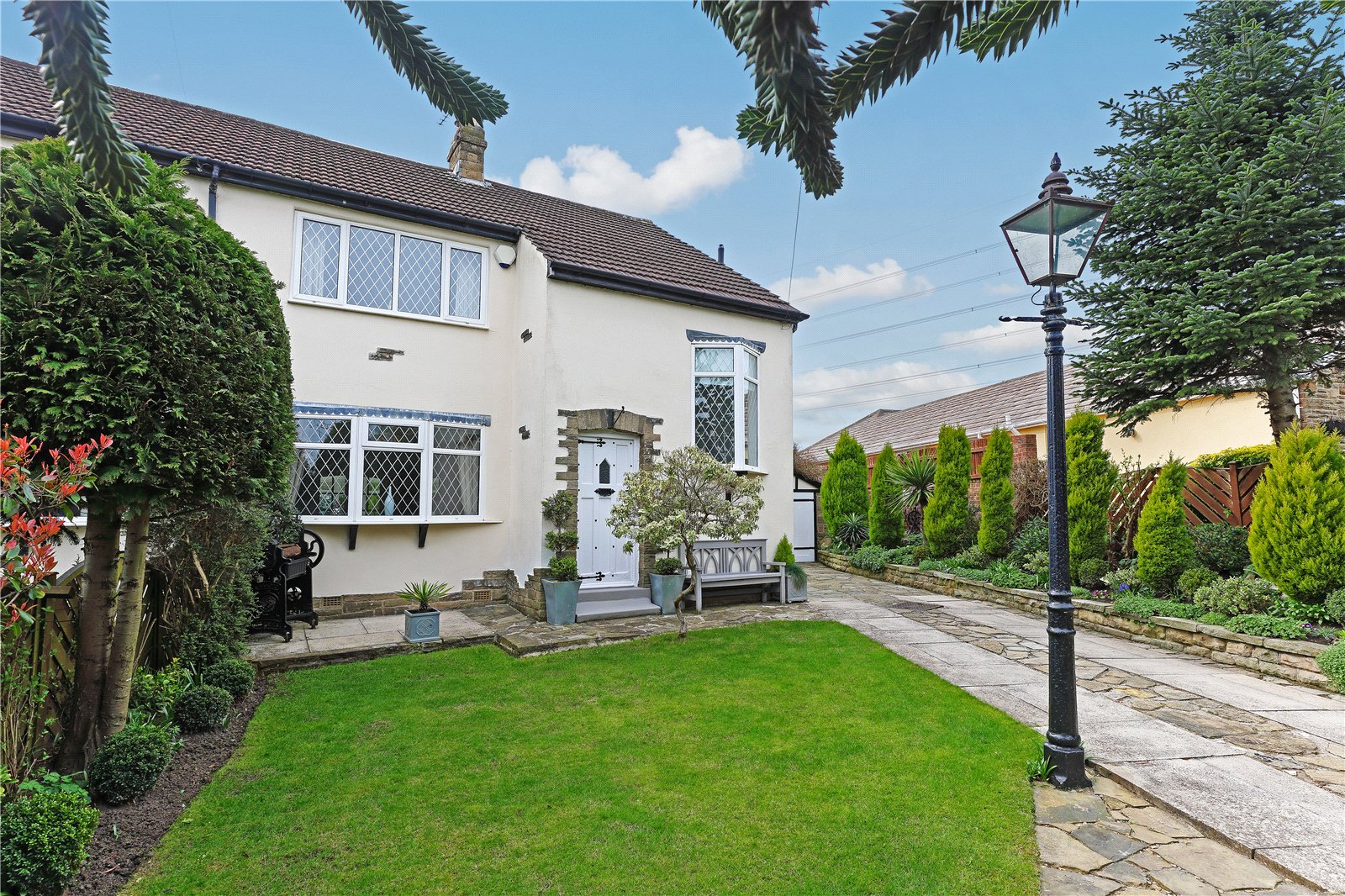 Holroyd Miller have pleasure in offering for sale this mature semi-detached house occupying a pleasant position set back from the road with open views to the front. The well planned and presented accommodation throughout, gas fired central heating, double glazing. Only an internal inspection can fully reveal all that is on offer with entrance hall, cloakroom/wc, leading to spacious through living room with feature Adam style fire surround with cast iron inset with open grate, double doors lead through to conservatory extension overlooking the rear garden, formal dining room with feature fire surround and feature double glazed bow window, well equipped kitchen with a range of cream shaker style wall and base units, contrasting granite worktops, integrated appliances, separate utility/rear entrance porch. To the first floor, three double bedrooms, house bathroom furnished with modern white suite with separate shower. Outside, delightful mature gardens with well-planned planting and lawn gardens to front and rear, driveway provides off street parking and leads to detached garage. A popular and convenient position within easy reach of the motorway network, local amenities and schools.